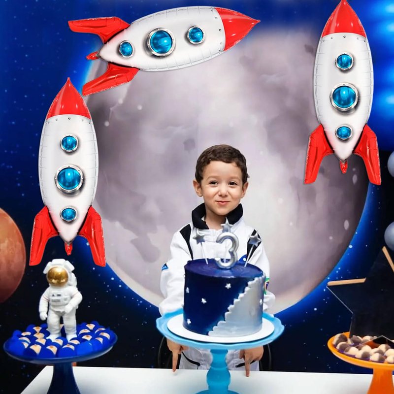 - Red Rocket Balloons: You will get 3 pieces 4D Spaceship foil balloons, these Rocket Balloons, and sizes are 33 × 19 inch,1 rolls of ribbon,1 straw. Rocket balloons are best decor choice for decorating space themed party, rocket birthday party.