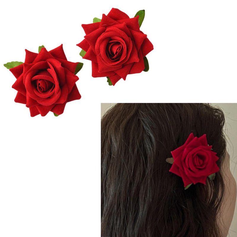 - 2 Pcs Rose Flower Hair Clips: The hair flower clips have a safety pin and a clip on the back, so the red flower hair clip can as rose clip or rose flower brooch, easy to clip to any clothing, shoes, hat, and can use the red rose clip wear in your hair
