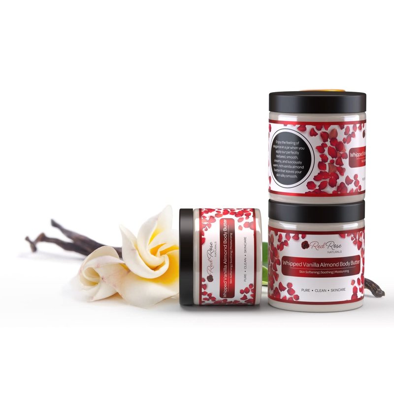 Red Rose Naturals Whipped Body Butter, Scented Vanilla Almond Body Cream 8 Oz, Moisturizing Shea Butter for Sensitive, Dry Skin, Non-Greasy, Soft & Creamy, Natural Skincare for Women – Vegan
