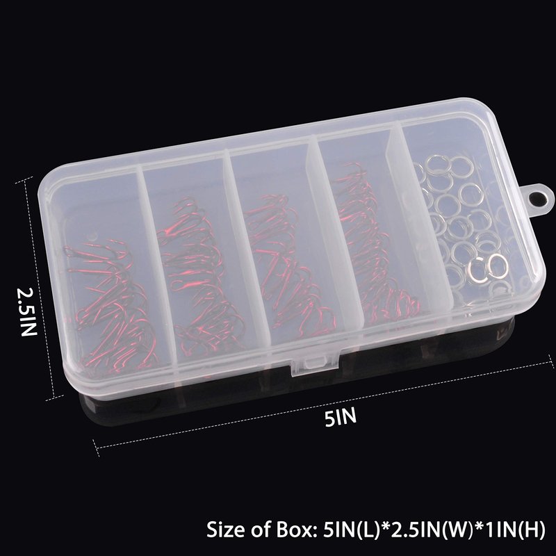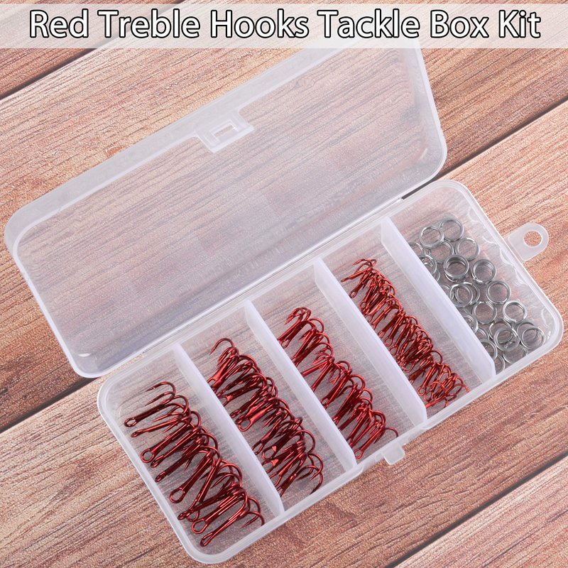 6. 100 Pcs/box for 4 Sizes Treble Fishing Hooks and 1 Size Double Rings