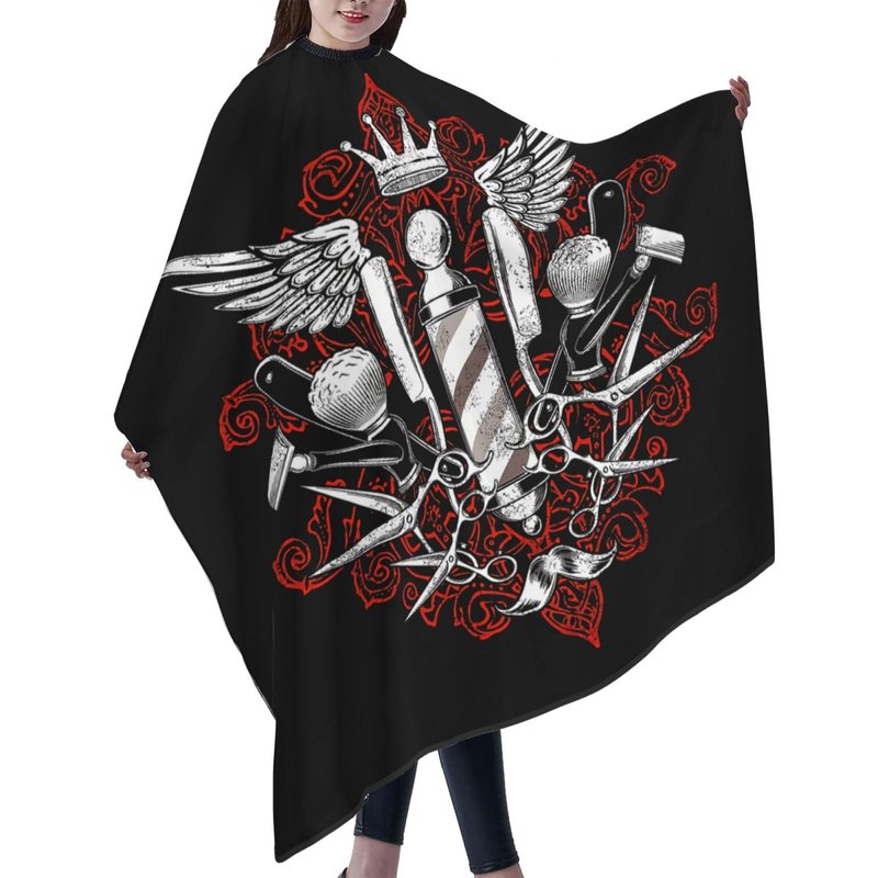 Red Wings Barber Pattern Barber Cape, Hair Stylist Salon Haircut Gown, Hair Cutting Apron with Adjustable Closure, Professional Salon Cutting Barber Skirt