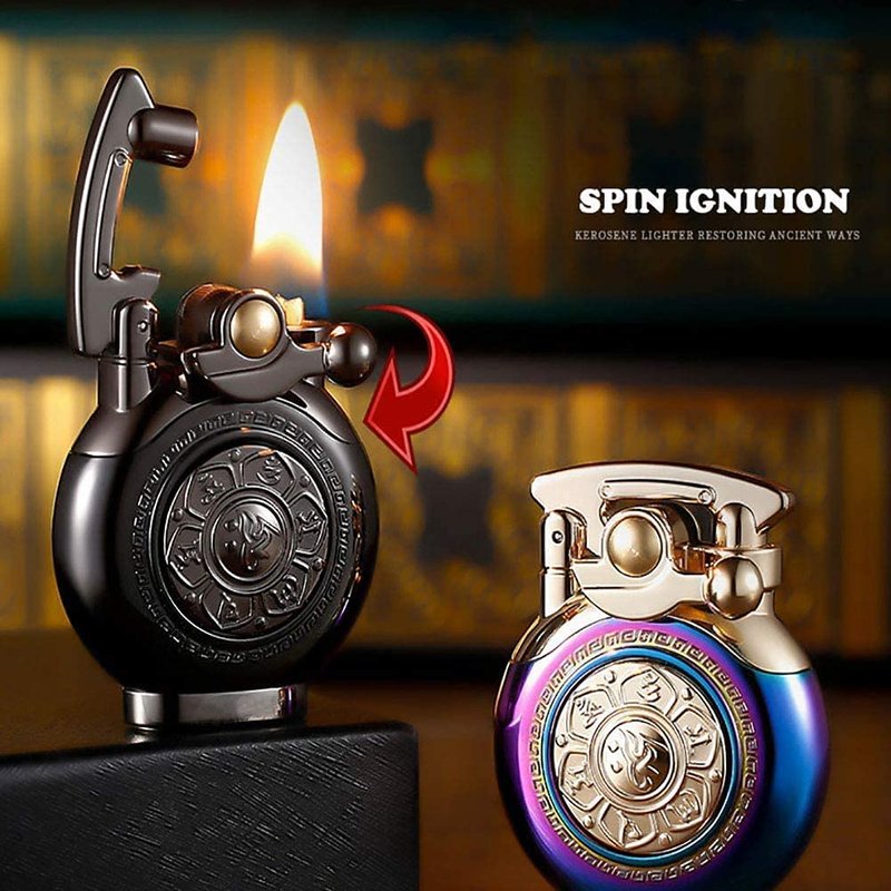 - ROTATING EJECTION IGNITION: This vintage lighter adopts a creative rotating ejection ignition method to make the firing more unique; the body of the turntable can be rotated, which is very suitable lighting and play; the black appearance can also show your elegant taste.