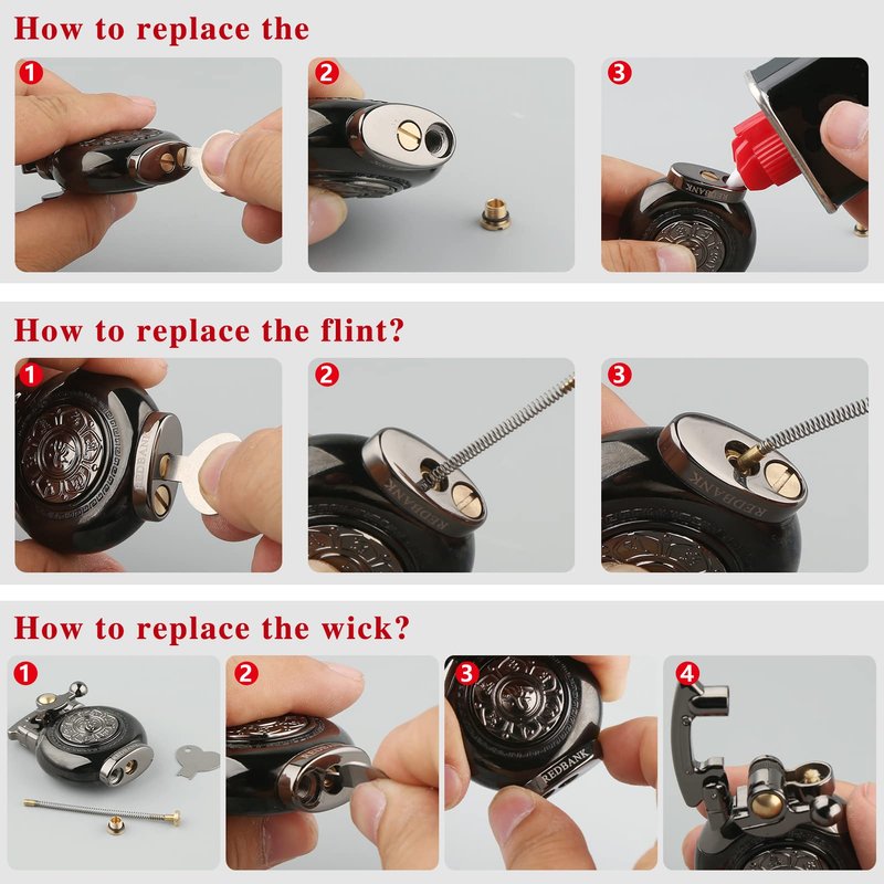 NOTE:LIGHTER FUEL NOT INCLUDED, all lighters are empty, so please fill fuel before the actual lighting.It is recommended to regularly take care of the Vintage Lighter to extend its life and use times.