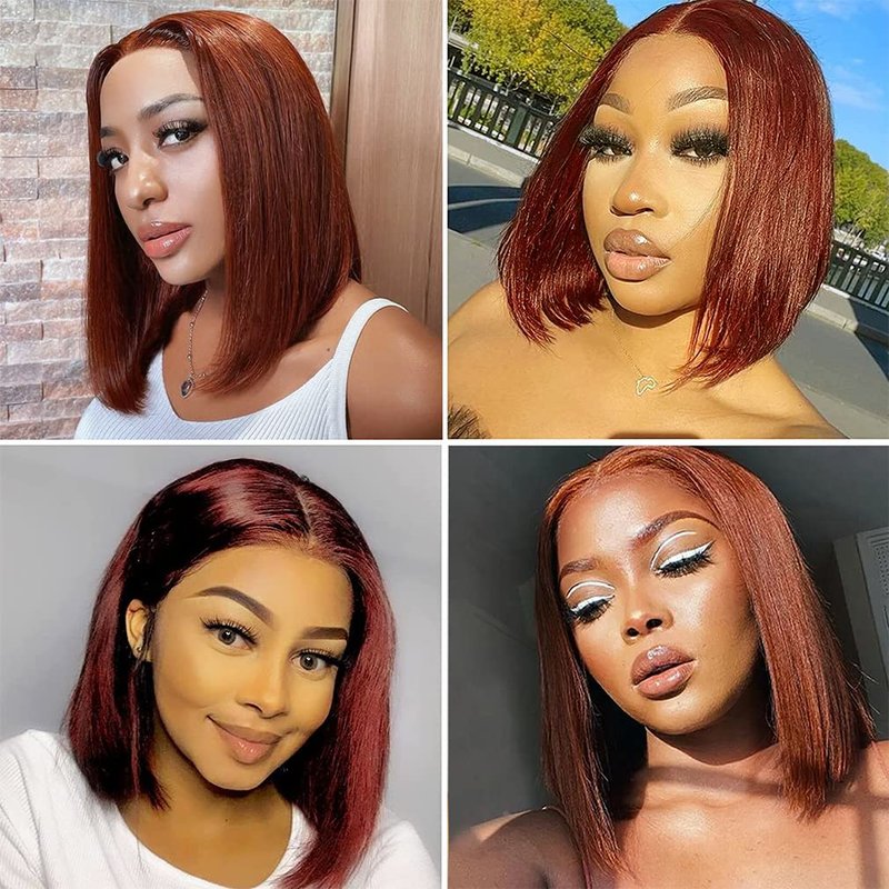 - Reddish Brown Short Bob Wigs Human Hair Features: the bob wigs are made with straight HD lace front wigs human hair, invisible Lace color, frontal wigs human hair pre plucked bob wig can melt and easily blend in all skin, natural hairline with baby hair reveal your beauty secret.