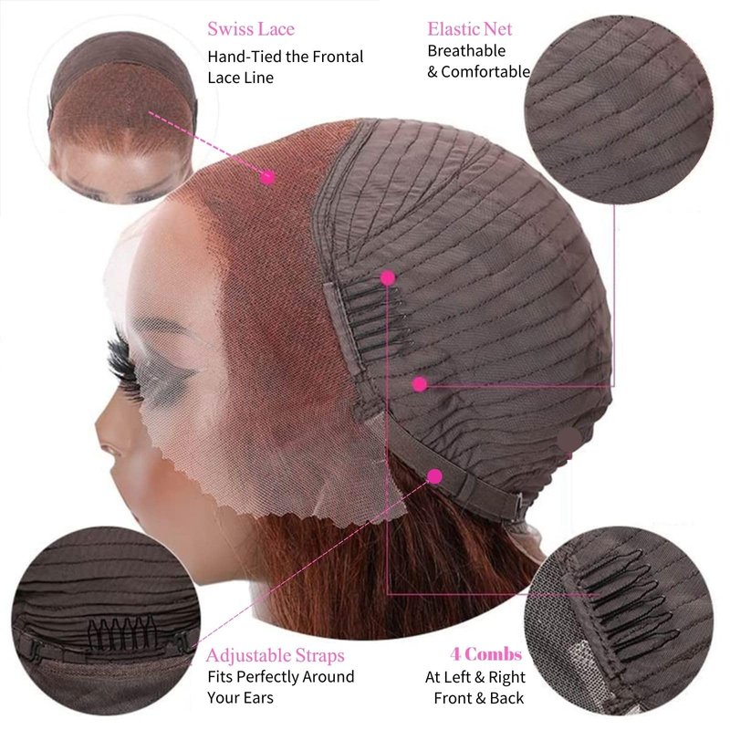 - One Size Fits All Wig Cap: Bob wigs for black women human hair wig, Glueless design average wig cap one size for all with adjustable hook straps, and 4 comb clips at side and back help you secure your reddish brown bob wigs when in Gym or swimming, wigs stay in place.
