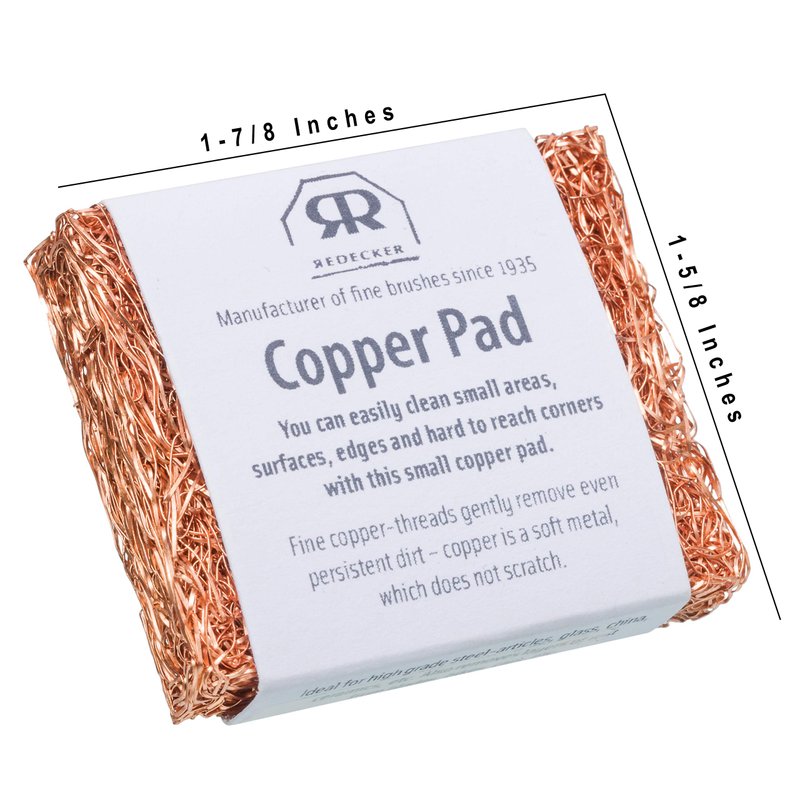 - Long lasting durability - Keep your surfaces spotless with this non-abrasive scrubber made with premium, long-lasting copper thread. Perfect for cleaning small areas, cleaning of surfaces and hard-to-reach corners. Redecker's Copper Thread Mini Copper Pad! Perfect for cleaning hard-to-reach corners, edges, and small surfaces.