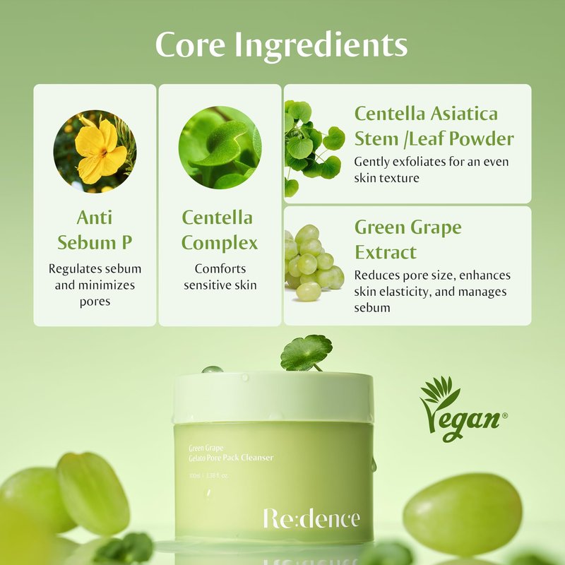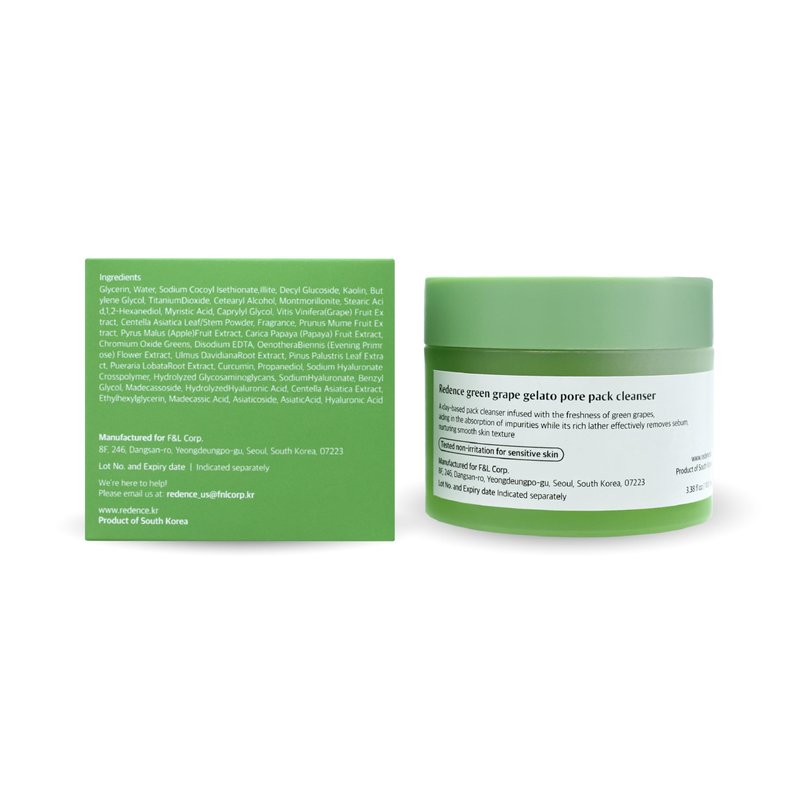 Redence Green Grape Gelato Pore Pack Cleanser, Shrink pores, calm skin, refine skin texture, absorb and remove impurities and sebum in pores