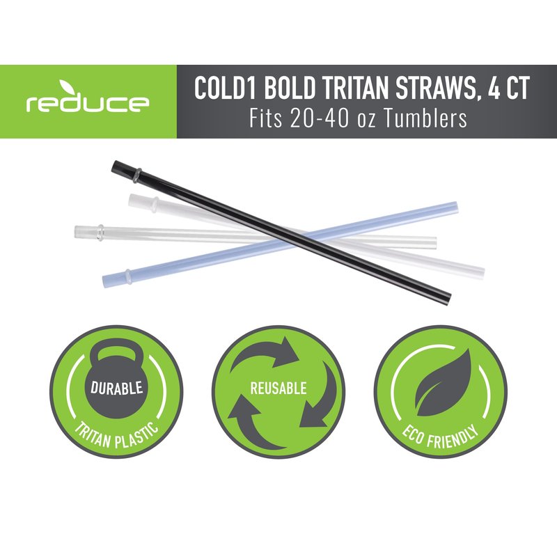 The reduce COLD-1 set of 4 straws are perfect for replacing any broken or lost straws. They are compatible with for the COLD-1 24oz, 30oz and 34oz tumblers (the straws are slightly too short for the 40oz thermal mug & too long for the 16oz Coldee but can still be used). They can also be used with your favorite tumblers or mugs. These straws are made with 100% BPA-free materials, dishwasher safe and measure 0.4" x 10.6" (per straw).