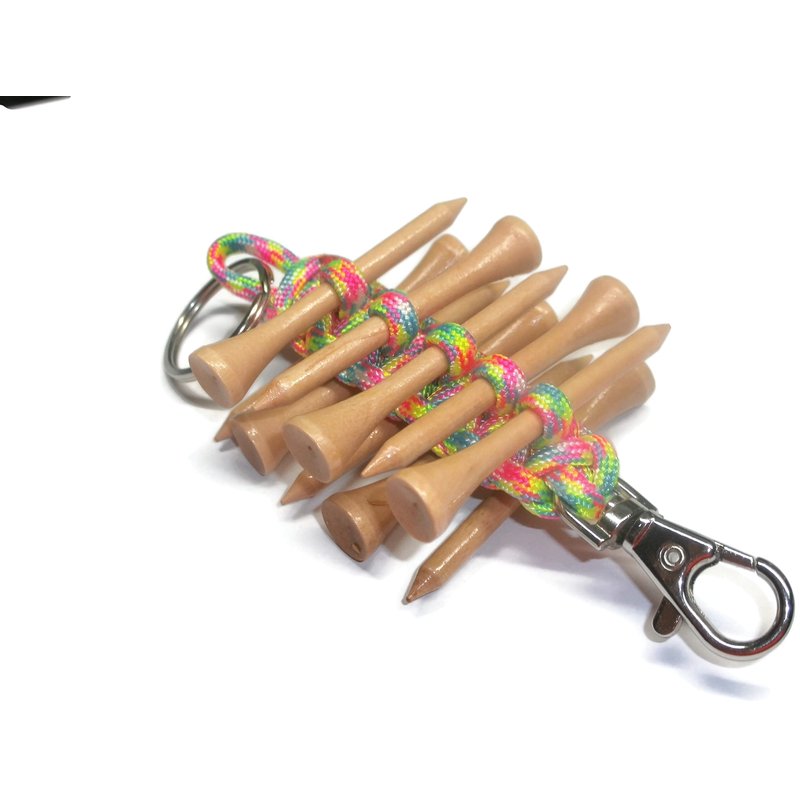 Hold your Golf Tees in place, clip to your bag and don't have to dig for tees. We have 9 Tee holders and 18 Tee holders in our store. We can make customized Tee Holders with your choice of number of tees, length, and color. Please contact us with your color choice prior to purchase to ensure we have your color(s) in stock. These holders are made in the USA from 550lb military style parachute cord. Since they are handmade, there could be slight differences in each of them, but will be similar to the picture in the listing.