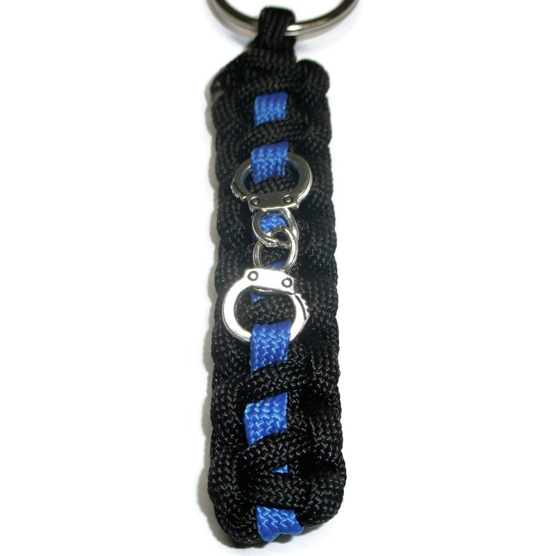 RedVex Thin Line Paracord Key Chain/Key Fob - Choose your colors - 3", 4", 6", and 8" Lengths (Qty-1) (Black with Blue Line, 6-inch with Handcuffs & ABS Clip)