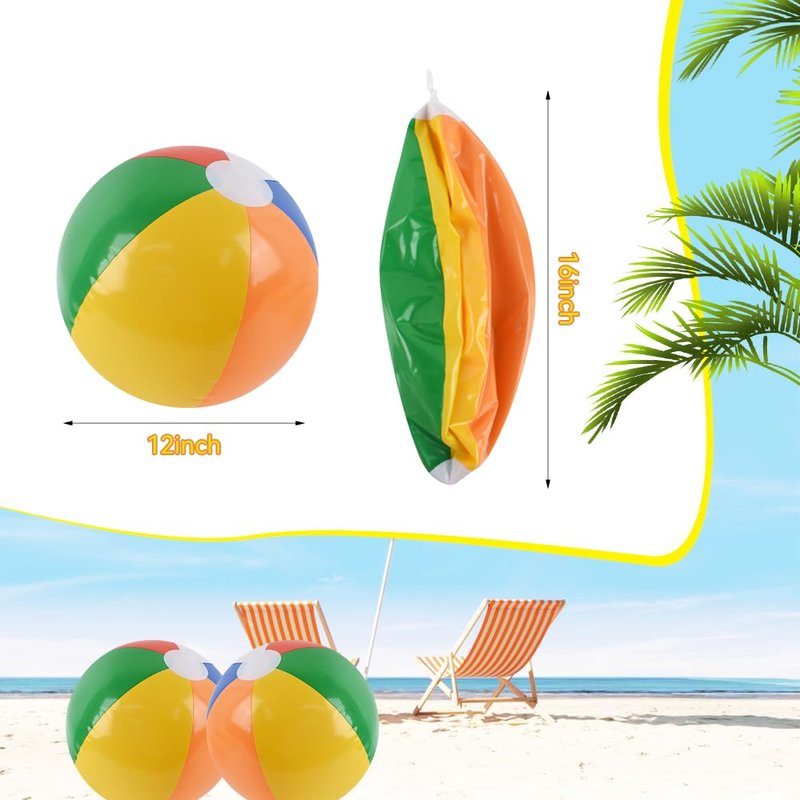 - Size: There are 4 beach balls inside the packaging. These small beach balls are 16 inch before inflation, 12 inch after inflation.