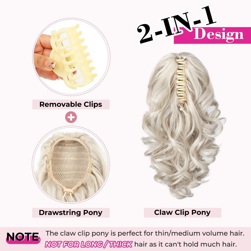 - ✨ [Short,Thin/Fine Hair Friendly] Super lightweight (110grams) with a claw clip to ensure a more comfortable and secure fit, perfect for short, thin or fine hair. Note: NOT recommend for long/thick hair because the claw clip can’t catch much hair