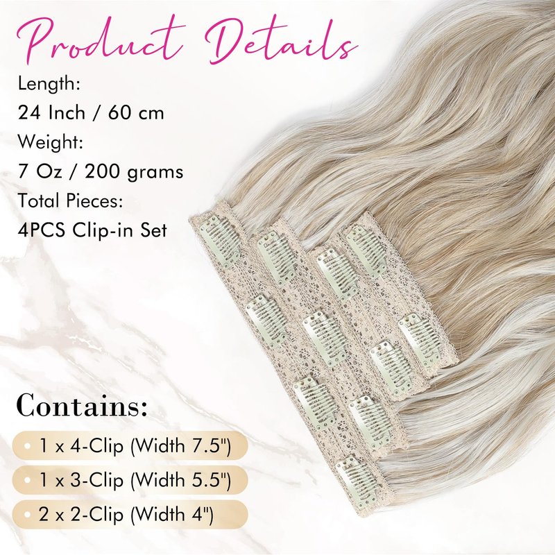 - ✨ [What Come In] Each pack comes with 4 wefts for customizable placement on thin or thick hair: 1 x 7.5" width with 4 clips, 1 x 5.5" width with 3 clips, 2 x 4" width with 2 clips; length 24”; total weight 200g