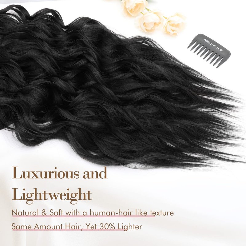 REECHO Hair Extensions, 4PCS Clip in Hair Extensions HE001 Natural Soft Synthetic Hairpieces for Women, Black