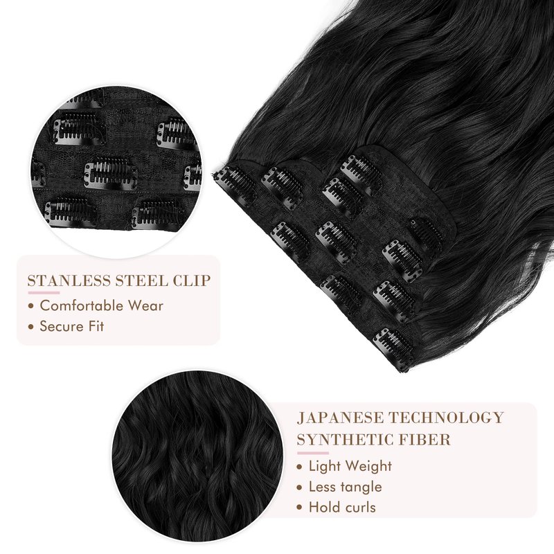 - ✨QUICK & EASY APPLICATION: Get that fresh-out-of-the-salon look in a matter of minutes! This kit contains 4 individual hairpieces ranging from 5–7” in width that can be layered to add extra volume. You can effortlessly slide each one into your real hair using the metal snap clips.