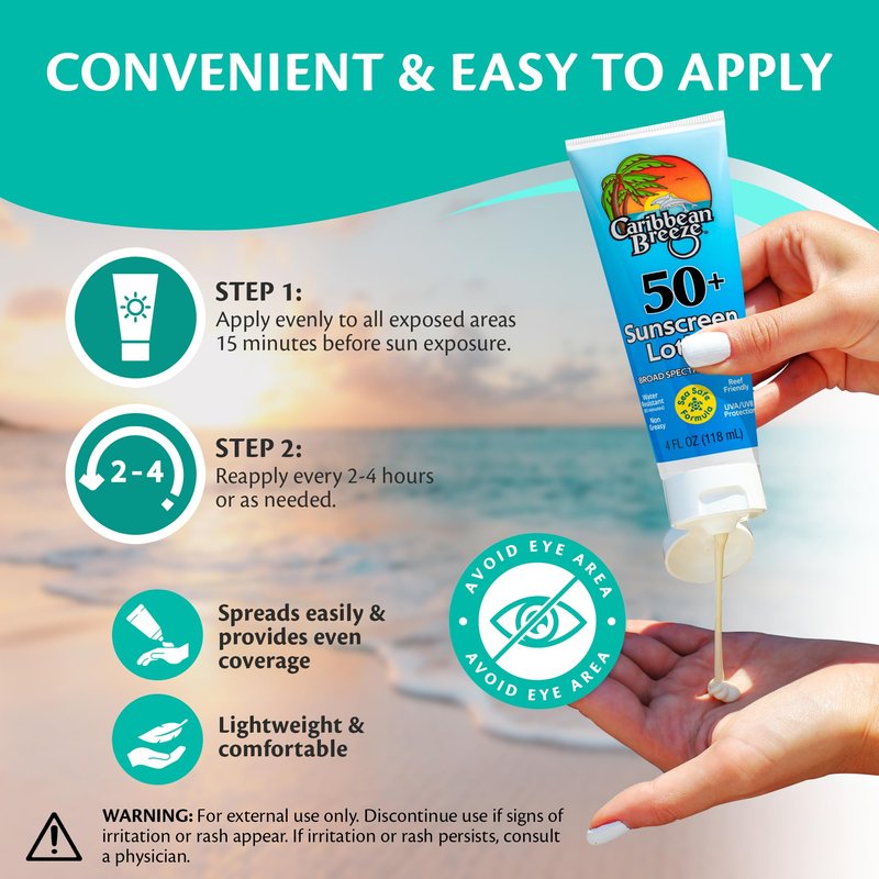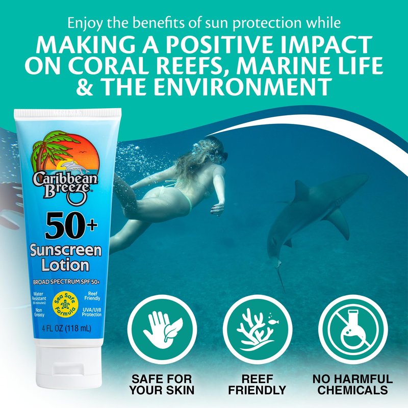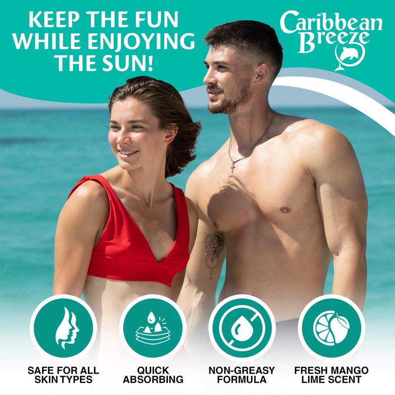 Caribbean Breeze Reef Friendly Sunscreen Lotion, Mango Lime Scent Body Sunscreen Lotion, Rich in Anti Oxidants, Water Resistant Up to 80 Minutes, Broad Spectrum Body Lotion with Sunscreen, 4 oz (120 ml)
