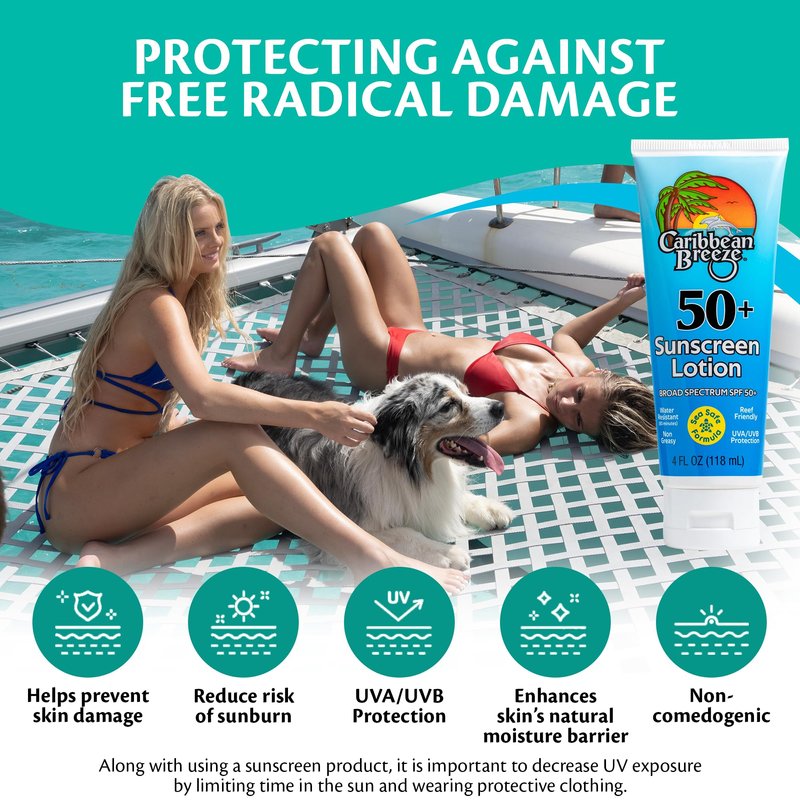 - UV-ANTI AGING SPF LOTION THAT PROTECTS YOUR SKIN FROM EXTREME SUN EXPOSURE. Our spf 50 sunscreen is a broad-spectrum sunscreen that protects your skin against harmful UVA/UVB radiation while promoting younger-looking radiance in the sun.
