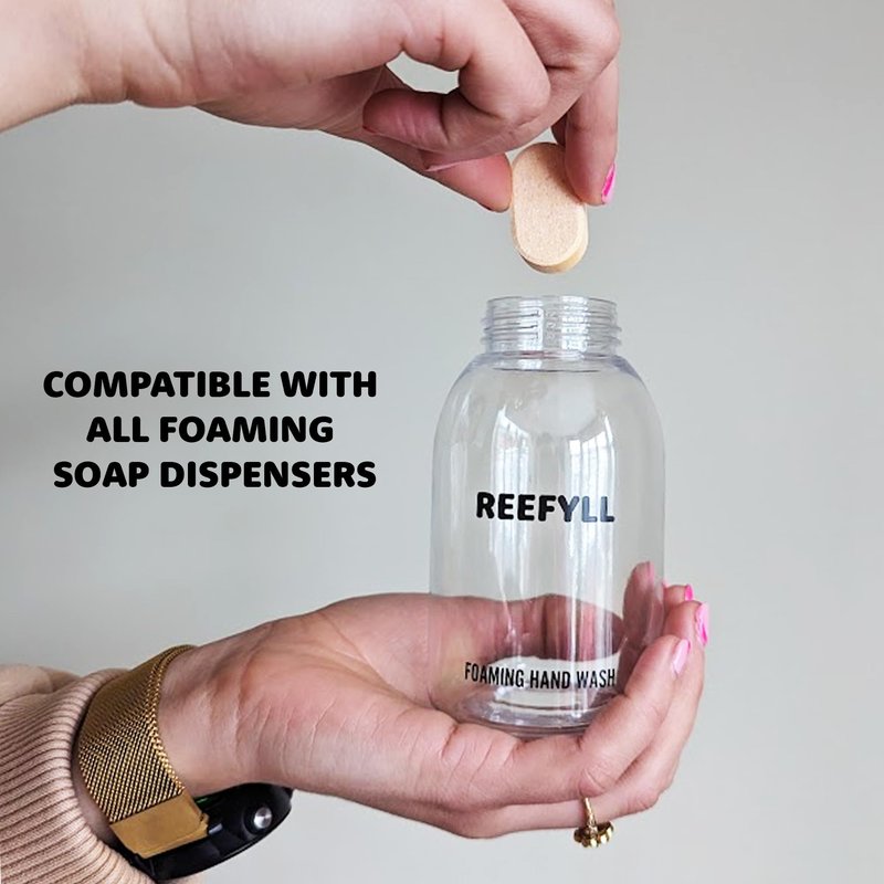 Introducing Reefyll Dissolvable Foaming Hand Soap Tablets – a revolutionary way to make handwashing both plant friendly and luxurious. Our innovative hand soap tablets are designed to transform your daily hygiene routine into a sustainable and refreshing experience. Say goodbye to traditional plastic bottles and hello to our plastic-free hand wash pods. Each tablet is meticulously crafted to dissolve quickly and completely in water, forming a rich and velvety foam that cleanses your hands with care. With Reefyll, you're not only treating your hands but also the planet. Immerse your senses in the invigorating aroma of Tropical Coconut Scent as you cleanse your hands. The captivating fragrance lingers delicately, creating a delightful and uplifting ambiance in your space. The Reefyll Foaming Hand Soap Tablets Pack includes 2 x 5 convenient tablets, ensuring that you have a lasting supply of sustainable hand wash. To use, simply add water to activate the tablet, and watch as it transforms into a creamy lather that envelops your hands in cleanliness. Join us in reimagining hand hygiene – cleaner hands, cleaner planet. Choose Reefyll Dissolvable Foaming Hand Soap Tablets and indulge in guilt-free luxury every time you wash your hands.
