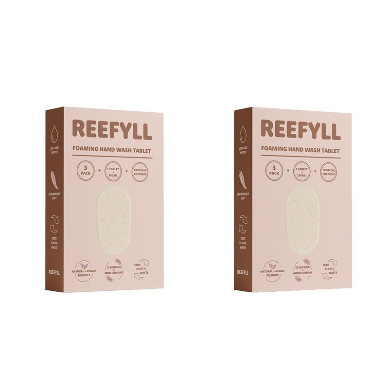 Reefyll Foaming Hand Soap 3 Refill Tablets, Dissolvable Plastic Free Hand Wash Pods, Just Add Water to Transform to Velvety Foam, Tropical Coconut Scent Duo Pack