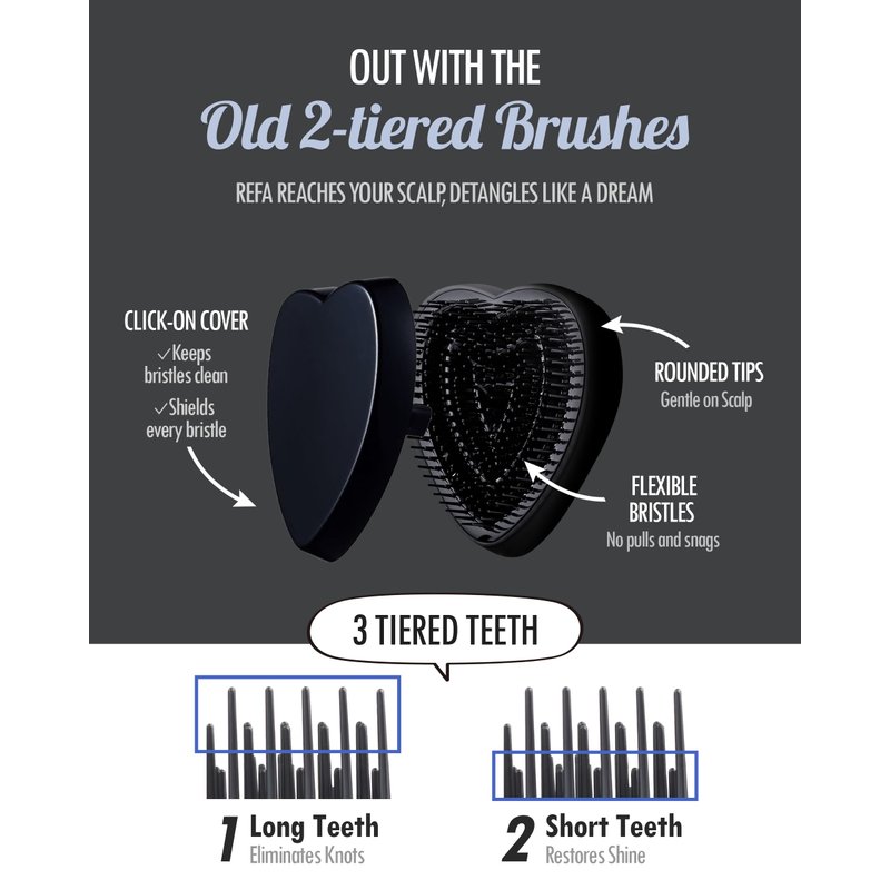 - EFFORTLESS DETANGLE. Discover effortless hair management with the ReFa Heart Brush. This hair brush for women and men has a three-tiered bristle system that makes detangling a breeze whether you have thick or fine hair. A must-have detangling brush in your arsenal.