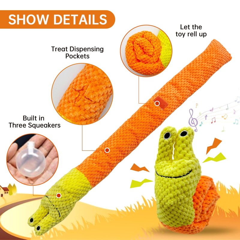 - Squeak Dog Toys:This cute toy has 3 built-in squeakers. It measures 26.7 inches in total length, this oversized dimension sets it apart from numerous interactive dog toys, whether it's for tugging, chewing or close play, this will get them excited, relieve the pressure.
