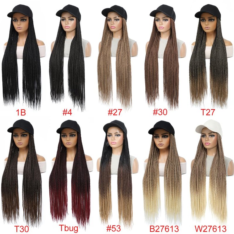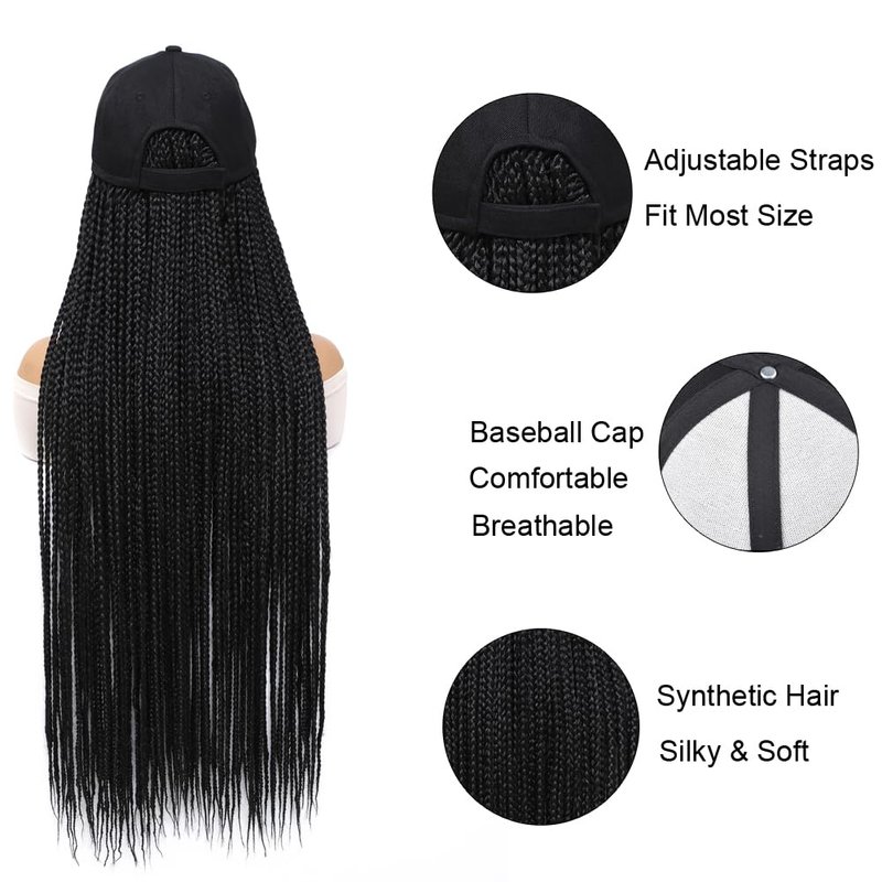Refined hair Baseball Wig Cap With 3X Box Braids Hair 30 Inch Long Synthetic Box Braiding Hair Extension Adjustable Wig Hat For Women Girls (1B, 30 Inch)