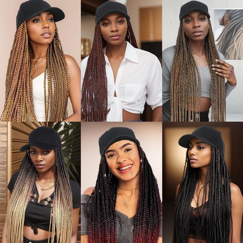 - 【Material】: This braided wig features a baseball cap design with attached box braids, offering a fashionable look for women. The cap is breathable. Professional workers securely sew the braids onto the hat, providing super soft, tangle-free, and shedding-free hair.
