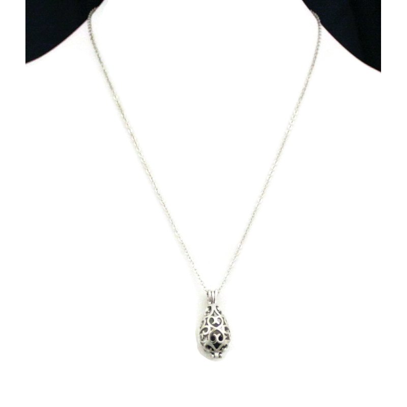 Reflect Teardrop Silver Filigree Essential Oil Diffuser Necklace- 18"