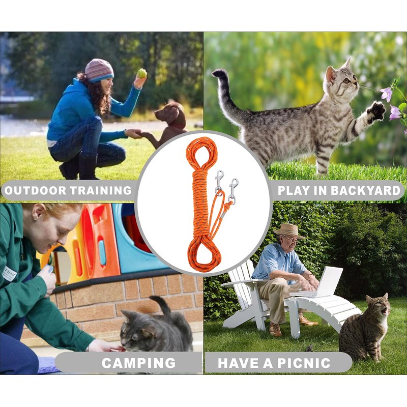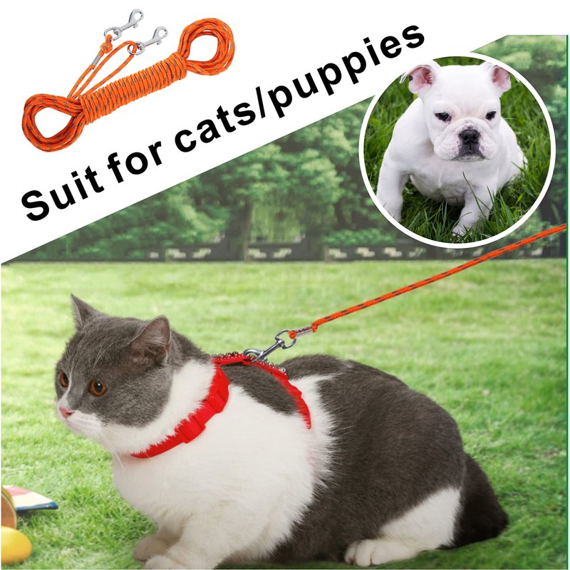 - [Product size] Our cat leash is 30 feet, which is very suitable for cats, small dogs, rabbits and other small pets to play/train/camping/hiking. Free activities are not restricted. Control pets to avoid being lost in your sight.