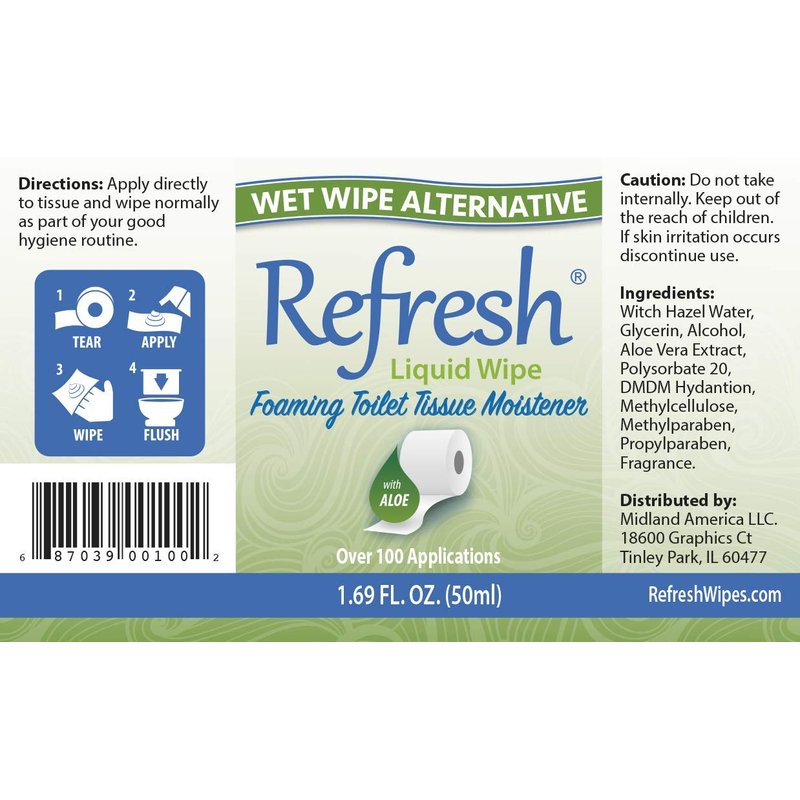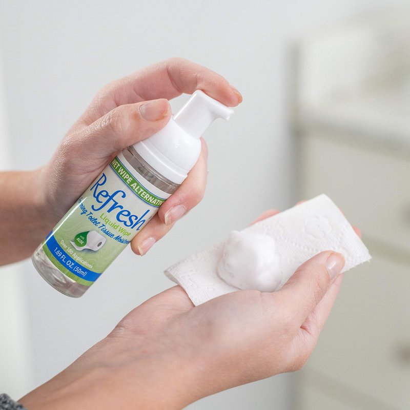 - A BETTER WAY TO WIPE: Toilet paper alone doesn't really leave you clean. Refresh Liquid Wipe provides a gentle moisturizing foam that converts the toilet paper you already have into a cleansing and soothing wipe, that is flushable and won’t clog your pipes. Original formula with witch hazel and aloe is gentle on normal skin types. Lightly Scented.