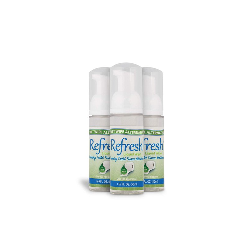Refresh Liquid Wipe Toilet Paper Foam is The Original Flushable Wet Wipe Alternative that you Use Directly on Toilet Paper to Create a Custom Wipe! Formulated with Witch Hazel and Aloe to Cleanse and Soothe, Refresh Foam produces a foam that stays on top of toilet tissue for over a minute, allowing you to add a little or a lot depending on your personal preference. Standard flushable wipes come pre-soaked and they have to be strong enough to remain intact for use, which is why they cannot break down like toilet paper moments after being flushed. Also, you cannot customize the level of moisture with a standard flushable wipe the way you can with Refresh Liquid Wipe and toilet paper. Original Formula for normal skin types is lightly scented. The Alcohol-Free formula is perfect for sensitive skin types and it contains no parabens or added fragrance. Refresh Liquid Wipe Toilet Paper Foam Cleanses and Soothes to greatly enhance your personal hygiene routine because it Cleans Away what plain toilet paper leaves behind. Convenient Personal Size 50ml (1.69 oz) Foam and 2oz Spray bottles fit discretely in your pocket or purse and provide hundreds of applications. They provide roughly the same uses and cost about the same as a 50 pack of competitive flushable wipes. Economical 250ml (8.45 oz) Household Size contains four to five times as much Refresh as the personal size bottles at a fraction of the cost per use. The 8 oz Refill allows you to refill your bottles and it can be used in any automatic foam dispenser. Zero-waste, sustainable, and packaged in recyclable containers. Perfect for travel, office and at home. A must have for freshening up after a workout or road trip. Great for boaters and RVers, campers, runners and hikers.