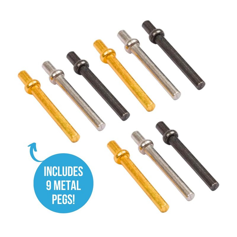 - DURABLE & COLORFUL: The solid wood construction of the cribbage board and the metal pegs are built to last generations. The high-quality playing cards offer an exceptional experience and the bright colors on the cribbage board contrast the gold, silver and charcoal pegs.