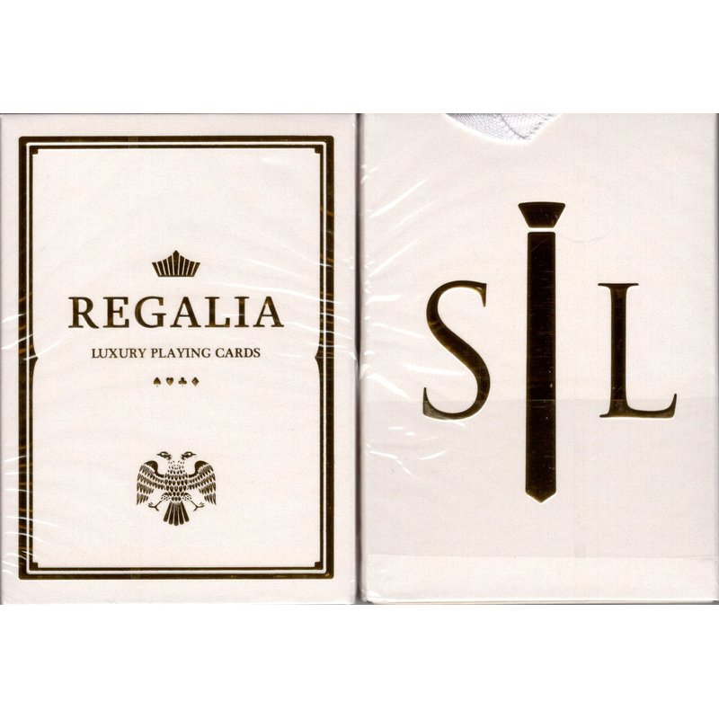 Resplendent in beauty! The second edition to the Regalia Playing Cards series. From the creative mind of Shin Lim and printed in Belgium by Cartamundi, comes a one-of-a-kind deck that was first introduced last year with an overwhelmingly positive response. ENGINEERED EXCELLENCE The box is made from two protective pearled white casings, with an inner and outer cellophane wrap. These individually gold-foiled cards are sealed to withstand any extreme heat or humidity during shipment. Our priority for the Regalia series has always been quality. Each card has been carefully hot stamped with gold foil and then protected with a true B9 finish, thus to not compromise the feel and fluidity with each shuffle or flourish. TIMELESS ELEGANCE Created for the magician in mind, every card in the deck has been designed to look standard (with the exception of the Jokers and Ace of Spades). Subtle changes, however, have been added to the court and number cards. Examples run from minor details like the stem of the spade, to the borders of the face cards. Each small alteration gives a sense of elegance every time you open the deck. THE BACK DESIGN Inspired by Russian art and specifically from the paintings on the walls of the historic Hermitage museum, the Regalia back design is a perfect balance of complexity and minimalism. Made for the card table, or just as decoration, the Regalia is a timeless masterpiece that will compliment your current collection.