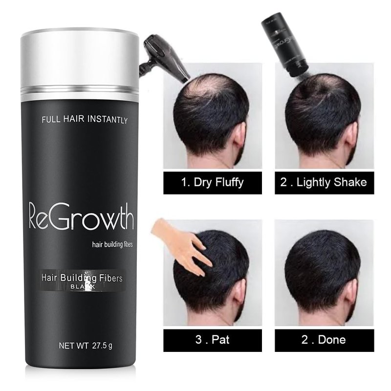 Regrowth Hair Building Fibers (BLACK) 27.5 Hair Fiber for Thinning Hair & Bald spots Hair Loss Concealer in seconds Hair Thickening Fibers for Men & Women