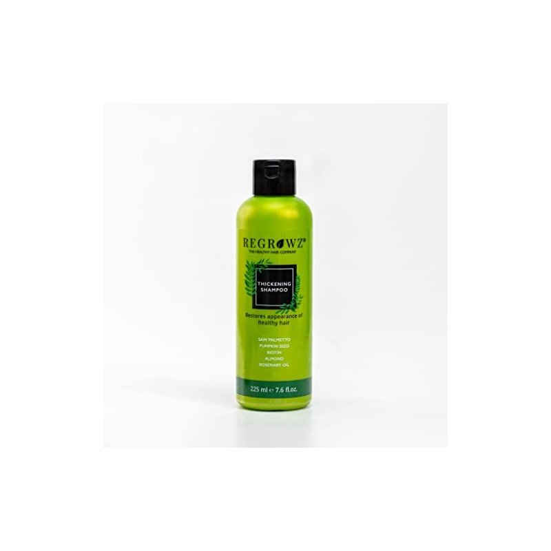Regrowz Hair Thickening Shampoo with Saw Palmetto, Shea Butter, Biotin, Coconut, Argon, Rosemary oil, Organic and Vegan, 225 ml