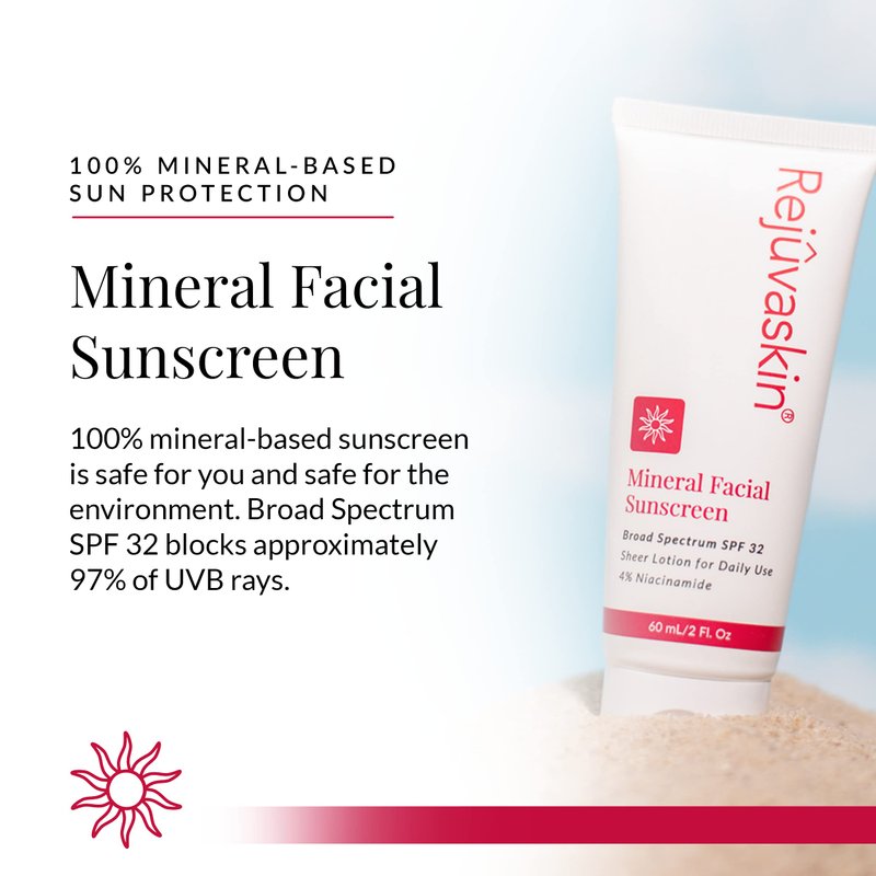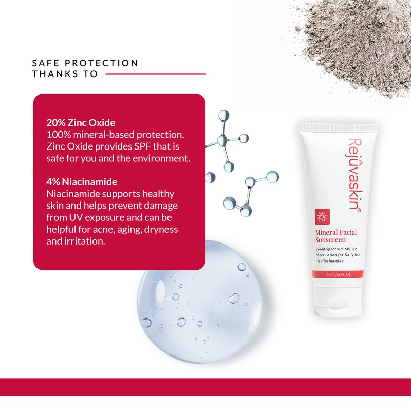 Rejuvaskin Mineral Facial Sunscreen - Face Cream Broad Spectrum Sunscreen for Sensitive Skin and Acne-prone Skin, Oil-free Mineral - Daily Face Lotion for the Face, Face Moisturizer with SPF 32