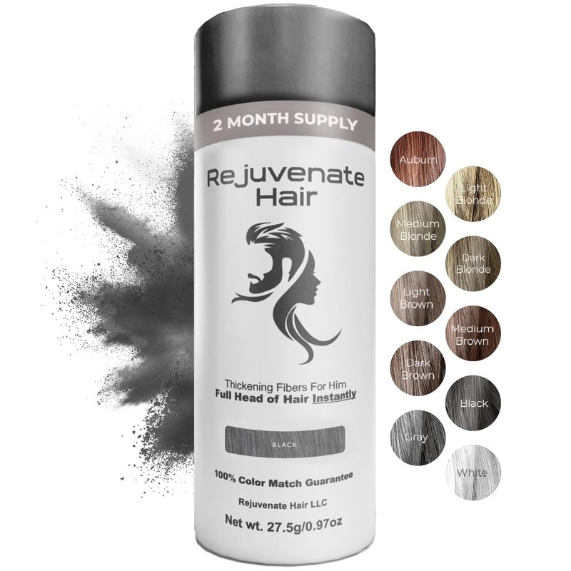 - NATURAL & UNDETECTABLE HAIR LOOK - Rejuvenate Hair's hair fiber powder blends seamlessly with your hair to provide the perfect coverage for thinning areas, hairline or bald spots. Our hair fibers for thinning hair save you money by providing a cost-effective solution to hair pieces, wigs, and clinics.