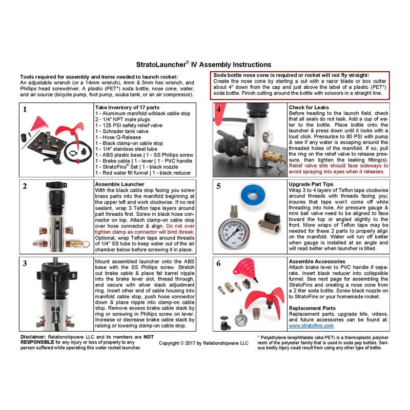- Kit includes our Gen 4 StratoLauncher + StratoFins (screw-on water rocket fins) + fill funnel. Watch assembly video on this listing at the end of the pictures.