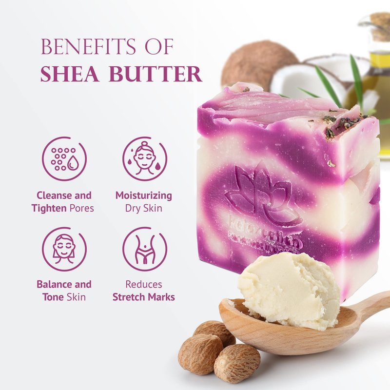 Relaxcation 4 Natural Cold Process Soap Bars - Shea Butter Lavender, Kaolin Clay Rose, Olive and Charcoal Soap Bar