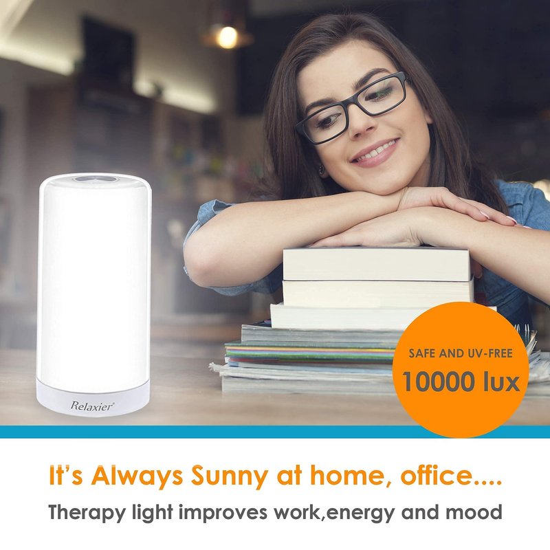 - BRIGHTEN YOUR MOOD AND BOOST YOUR ENERGY WITH NATURAL WHITE LIGHT. The Relaxier light therapy lamp mimics the sun's rays with 10,000 LUX of safe and UV-free white light. It helps you fight winter blues and supports your sleep cycle.