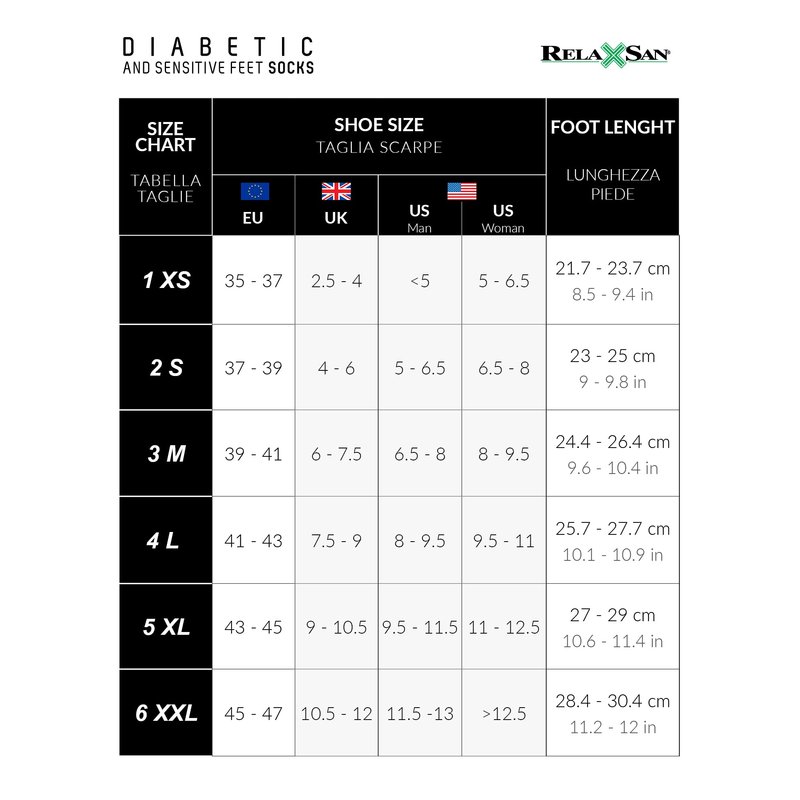 - CHOOSE THE CORRECT SIZE – If you are looking for maximum comfort, choosing the correct size is critical. Please look at our size chart published in the product images. 100% MADE IN ITALY. All Relaxsan products are designed, made and packaged in Italy in compliance with high-quality standards