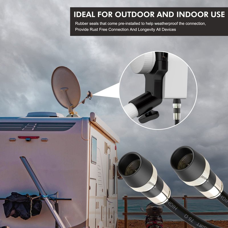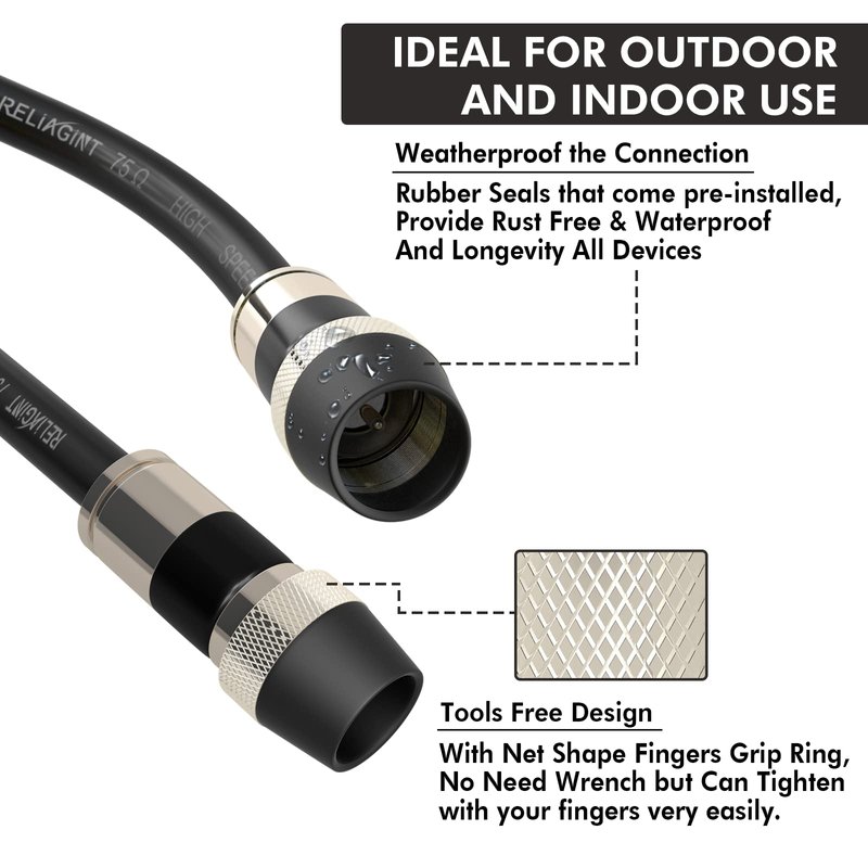 - Ideal for Outdoor and Indoor use. Rubber seals that come pre-installed to help weatherproof the connection, Provide Rust Free Connection And Longevity All Devices. Tools Free For Connect The Cable Wire, Due To Finger Grip Ring Design, No Need For The Wrench To Tighten It