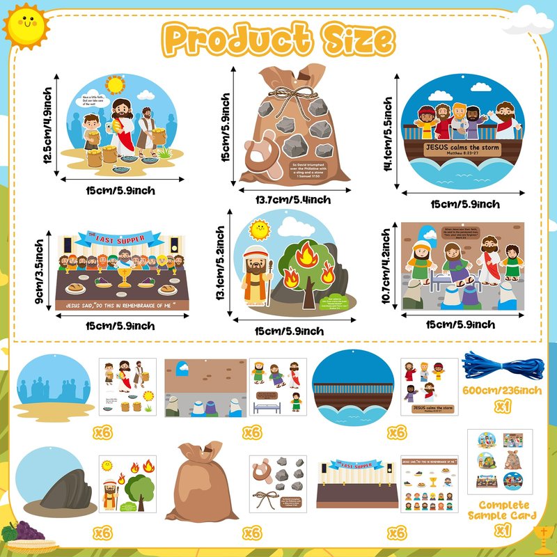- Christian Craft Kit: The package includes 36 pieces of background card in 6styles, 36 pieces of the self-adhesive sticker in 6styles, and a rope(6m/19.7ft), which are sufficient to satisfy your daily use and needs, replacement, and different creative handmade needs.
