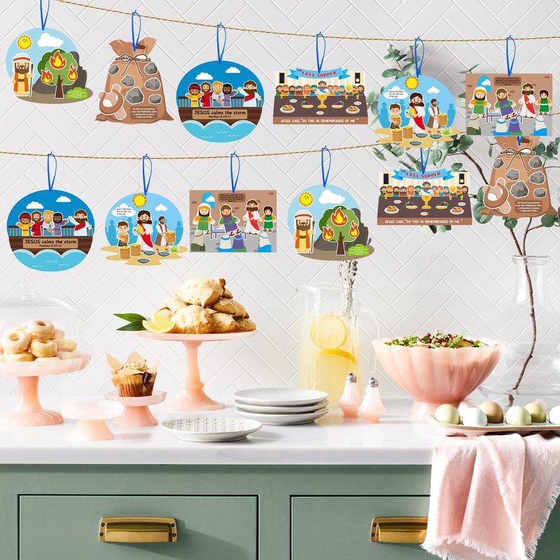 Religious Sunday School Crafts for Kids 36Set Bulk Christian Bible Stories DIY Paper Craft Sticker Hanging Ornament Craft Kit for Classroom VBS Activities Sunday School Church Carnivals Exchange Gifts
