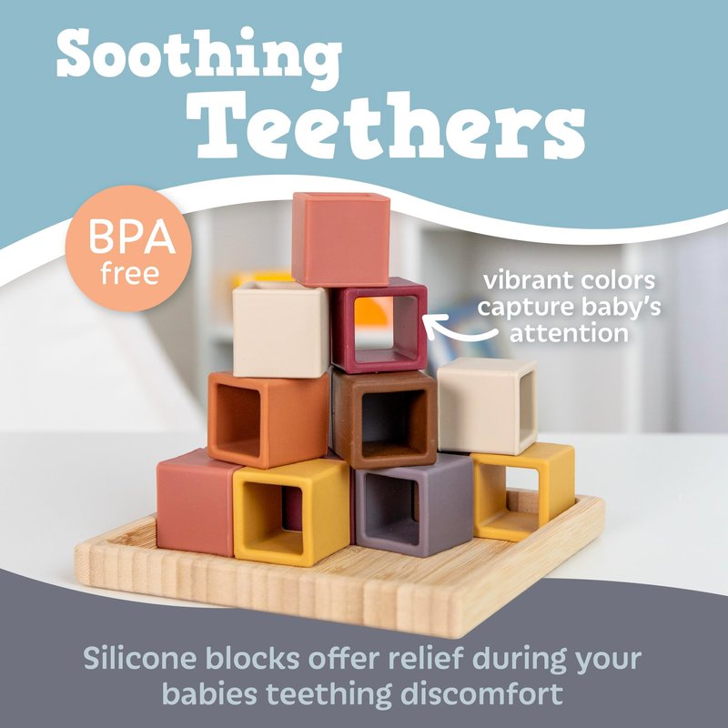 - MULTIPURPOSE TOY: Not only are these blocks great for educational play, but they are also safe for soothing teethers, offering relief during your babies teething discomfort.