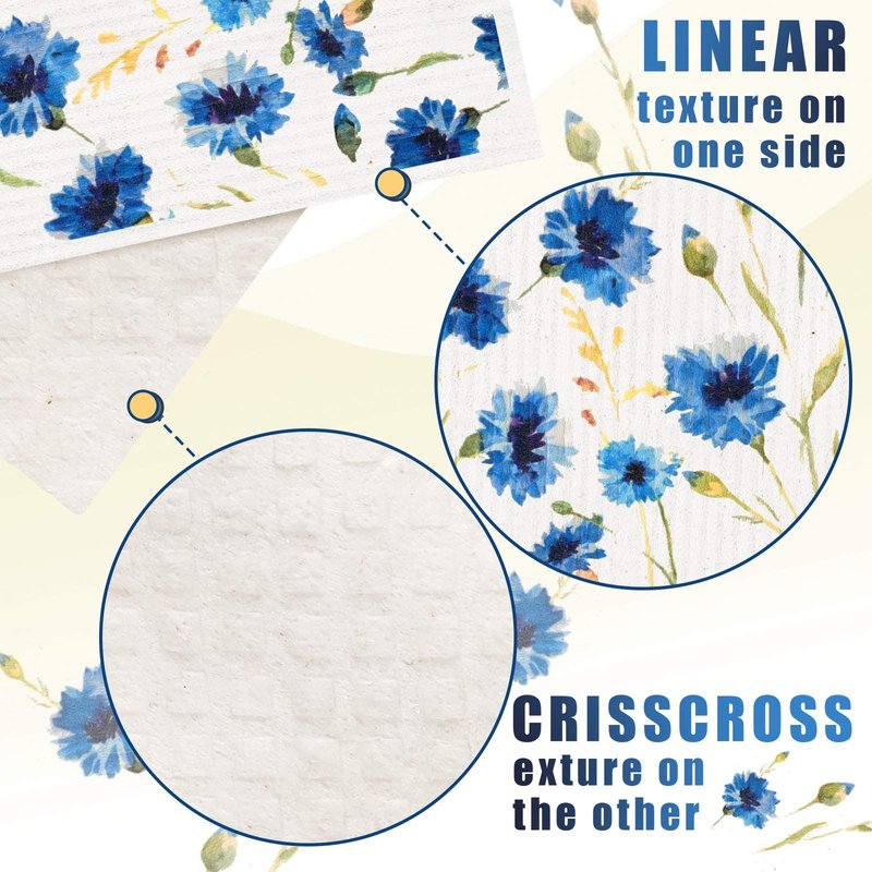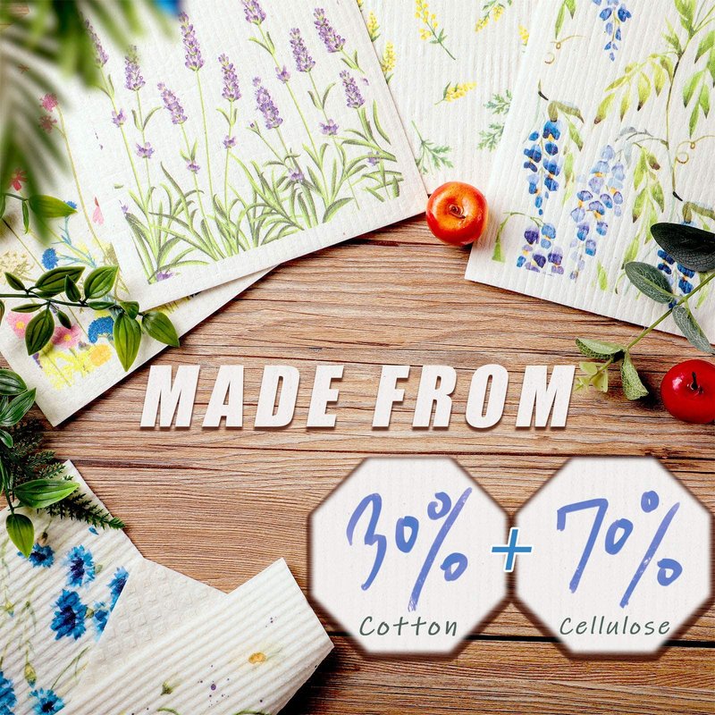 - Wildflowers designs: featuring 6 different types Wildflowers patterns, these Swedish dishcloths with exquisite and lovely appearance, can bring a warm and vivid feeling when you are cleaning, so that you can clean the kitchen with adorable and bright elements