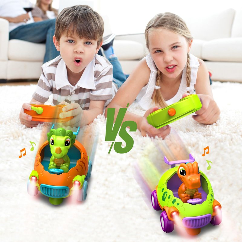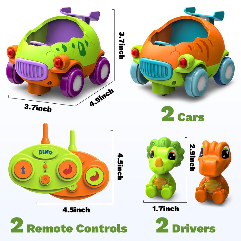 - 【My First RC Car】 This set of two remote control cars for toddlers 1-3 includes two remote controls and two dinosaur drivers. The egg-shaped cars feature music and lights, providing an engaging play experience. Designed as an ideal birthday gift for 2 3 4 year old boy.
