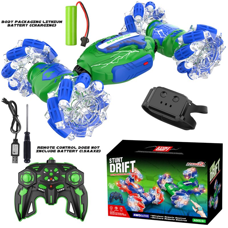 - Gesture Control/Remote Operation: The drift stunt remote control car uses 2.6GHz transmission technology, ensuring precise control over long distances. Remote control cars has two control modes, including gesture control and remote control. Put on the sensing watch, when fingers move, the car will follow. Kids can easily master the vehicle with hand gestures, or use the remote control for more precise control.