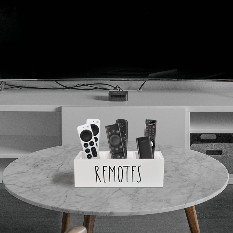 - FARMHOUSE STYLE --- Cute font of REMOTES is printed on a farmhouse style storage container, providing modern farmhouse touch to your home. It is a wonderful alternative to plastic TV remote caddy.