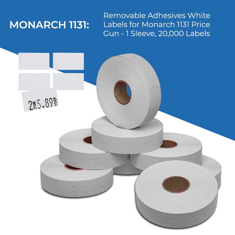 Removable Adhesives White Labels for Monarch 1131 Price Gun - 1 Sleeve, 20,000 Price Gun Labels